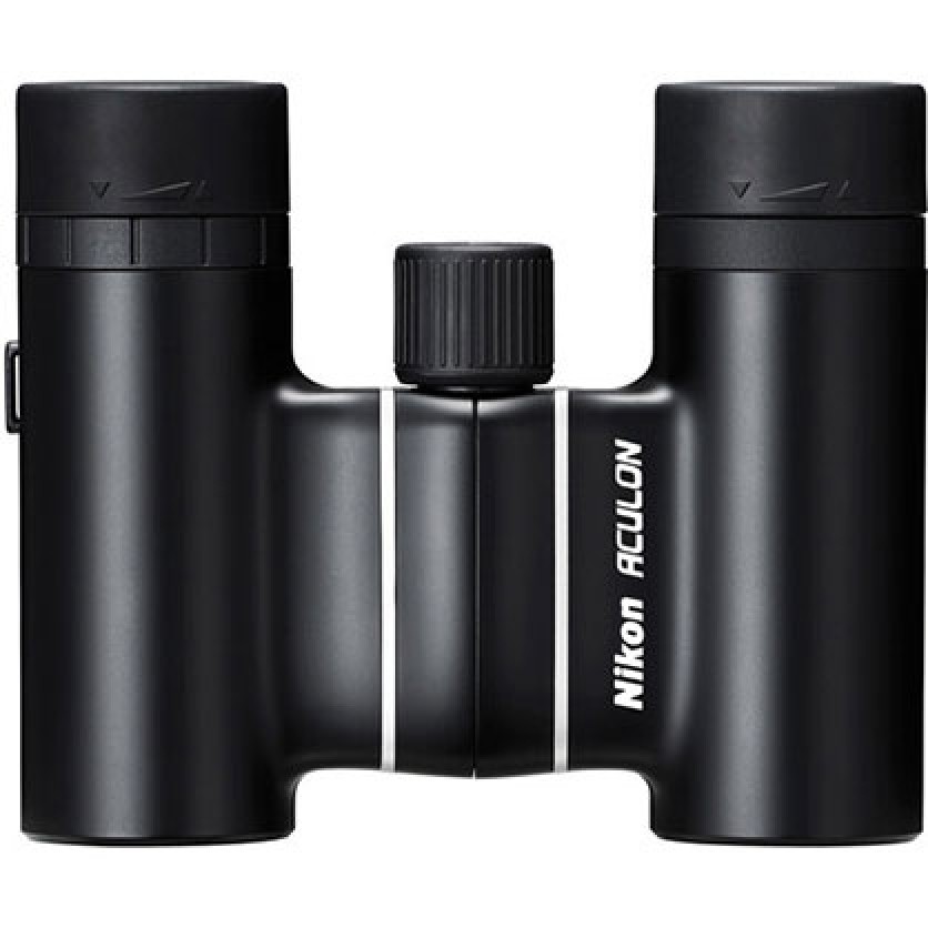 The Nikon Sport Optics 10x21 Aculon T02 Compact Binocular, in basic black, give you a versatile and capable optic that easily fits in the palm of your hand¡ªmaking it your ideal companion for all your observation needs from the ball park to the hiking trail to the concert venue to sightseeing around a new city. Its anti-reflection multicoated optics, eco-friendly glass, and compact roof prisms produce bright and clear images with enhanced contrast and accurate color representation. The sleek and stylish design not only looks cool, it also gives the Aculon a solid feel in the hand with a comfortable grip. A low-profile focus wheel enables easy use for lefties or righties with a right-eye dioptric correction that brings your view into tack-sharp focus, even if you wear corrective lenses.