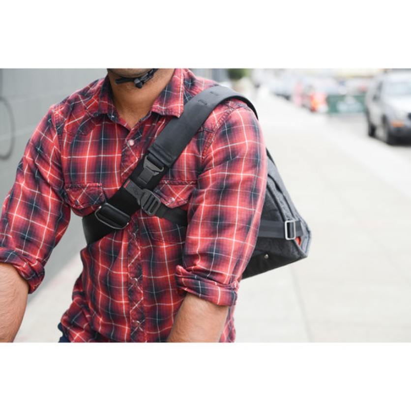 The MagLatch adjustable latching system allows your bag to expand and contract without losing shape or sacrificing time transferring contents into another bag. A magnetic clasp and four ladder locking points create multiple options for you to secure your gear. Two dedicated capture clip attachment points and a top zippered opening allow for quick camera access. The 2" wide messenger strap easily converts into a low-slung shoulder strap, while a stabilizer strap can be worn cross-body for better weight distribution, or as a trolley strap for convenient coupling when traveling with rolling luggage.