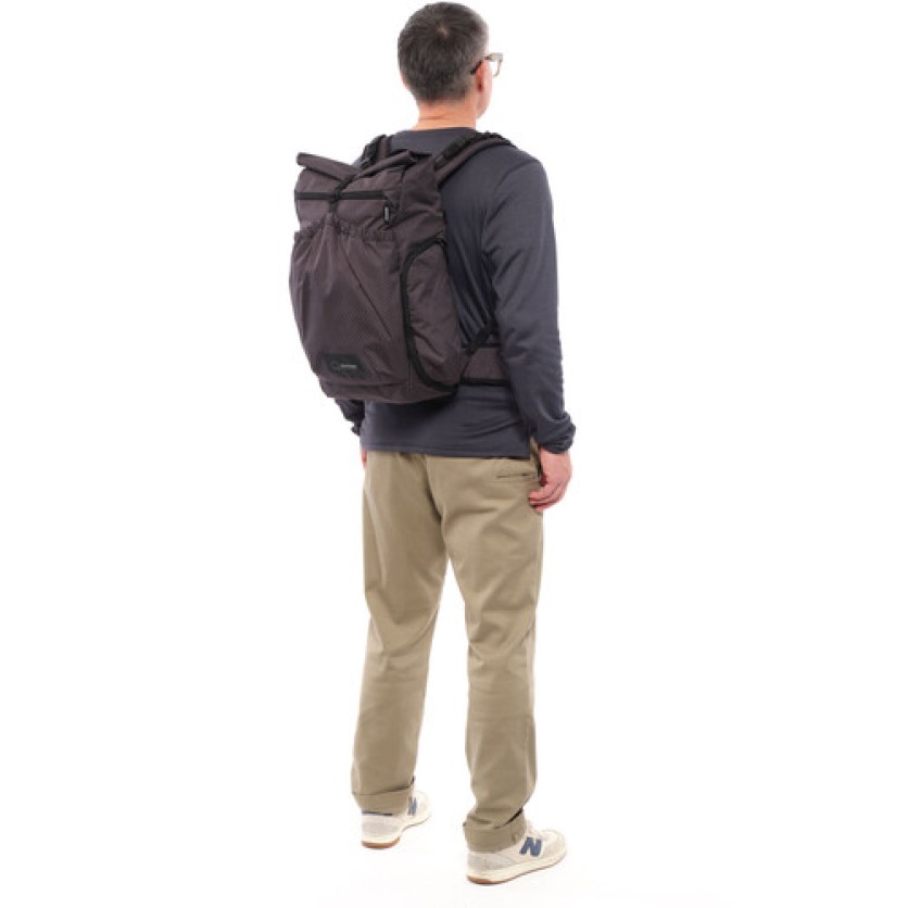 This backpack offers versatile storage with modular camera inserts, expandable rolltop, and side access for quick gear retrieval. It ensures comfort with padded capture straps and a phone pocket. Made from recycled materials, it includes a rain cover for protection, making it eco-friendly and weather-resistant. The lightweight design accommodates hydration needs and large items, adaptable for various shooting scenarios and travel conditions.