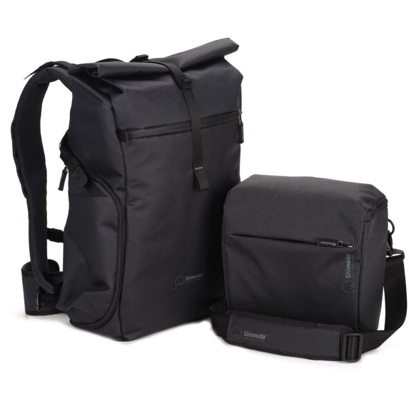 The Side Street 22 Starter Kit from Shimoda Designs features an efficient backpack that offers quick side access so you can get to your gear in an instant without stopping to put the pack down. Its unobtrusive roll top design ensures your contents are kept out of sight in potentially unsafe locations. The roll top can be expanded as needed to meet changing travel and gear needs. The pack maintains its low-profile, minimalist silhouette even when the rolltop is expanded. Included with the versatile Starter Kit backpack is a Shimoda Medium Top Loader camera insert. All Side Series backpacks are compatible with Top Loader camera inserts, which allow you to adapt to different shooting scenarios using one modular system. The Side Street 22 accommodates the small or medium Top Loader, which functions as an insert for organizing the interior of your pack or as a standalone sling/shoulder bag. It can also be used with the backpack's waist belt as a hip pack.