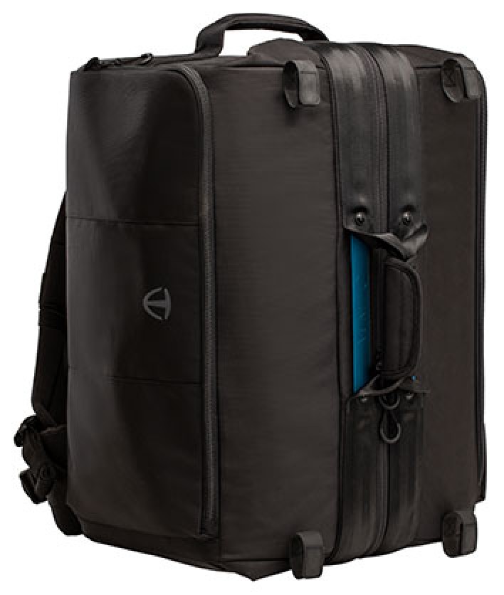Two safety straps secure your gimbal within the bag, while the padded wraps can be used to protect smaller items as well as snug your gear inside the bag. The bag itself features Tenba's ventilated Airflow back panel, and harness straps that automatically adjust for different shoulder widths and body types. A hip belt provides extra support, and it can be removed if you prefer. A built-in adjustable trolley strap secures your bag when transporting it by a variety of wheeled trolleys