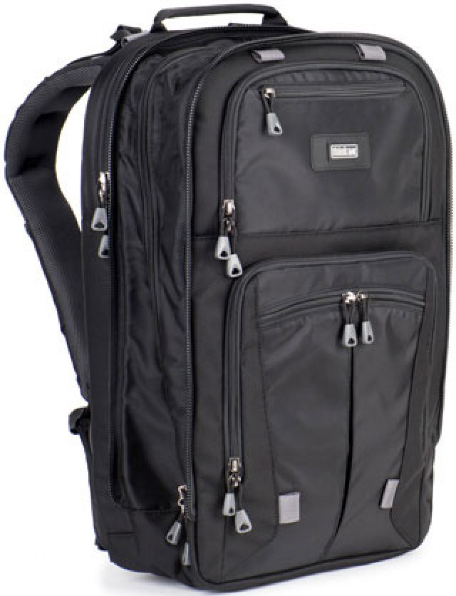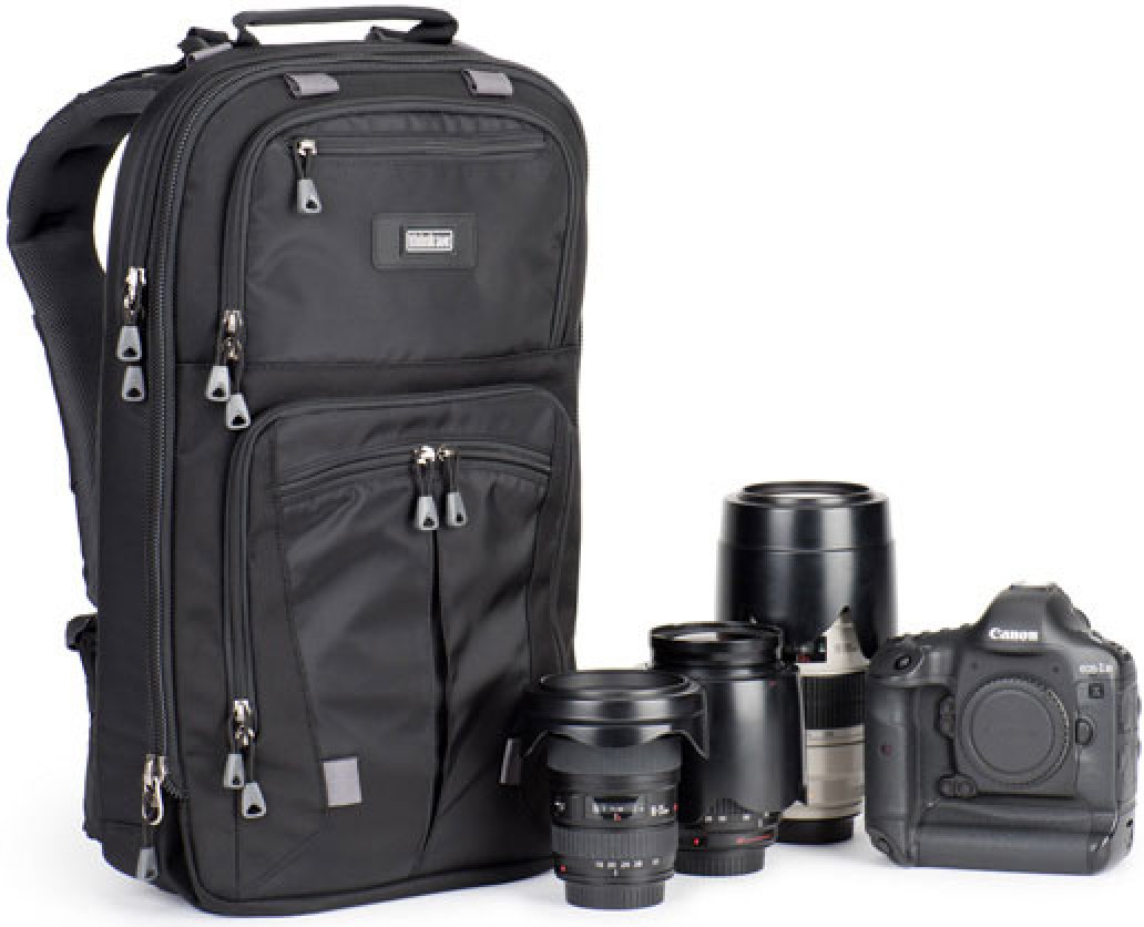 Bring two gripped or un-gripped DSLRs, four detached lenses, related accessories, an up to 17" laptop, a tablet, and personal items on your next photo adventure with the black Shape Shifter 17 V2.0 Backpack from Think Tank. The Shape Shifter gets its name from the ability to save space by compressing to a depth of only 3" when empty. The pack features separate laptop and tablet compartments, and a spacious, zippered main compartment with neoprene pockets and wraps to store, protect, and organize gear. On the front exterior of the pack is a pocket for the base of a small tripod, and adjustable straps to secure the upper and lower sections. Additional storage is provided by exterior pockets, organizer panel, and a plush pocket for a cell phone with an up to 5.5" display.