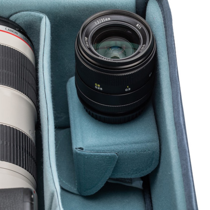 The divider kit includes a partition with a built-in pocket and touch-tab closure to secure small accessories such as batteries, a memory card wallet, or a hard drive. Three horizontal and three vertical dividers are also provided, and each features a flexible design that can effectively be configured according to the shape of the equipment being carried within a Shimoda Designs Core Unit. While a horizontal divider can be best suited for items with their longest sides arranged parallel to the sides of a Core Unit, a vertical divider can more effectively hold an item with its longest sides positioned perpendicular to the Core Unit.