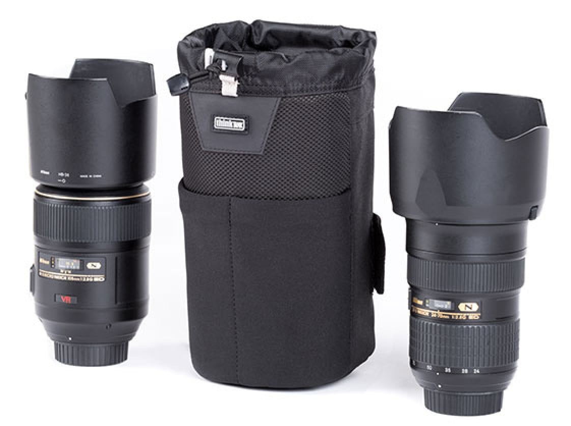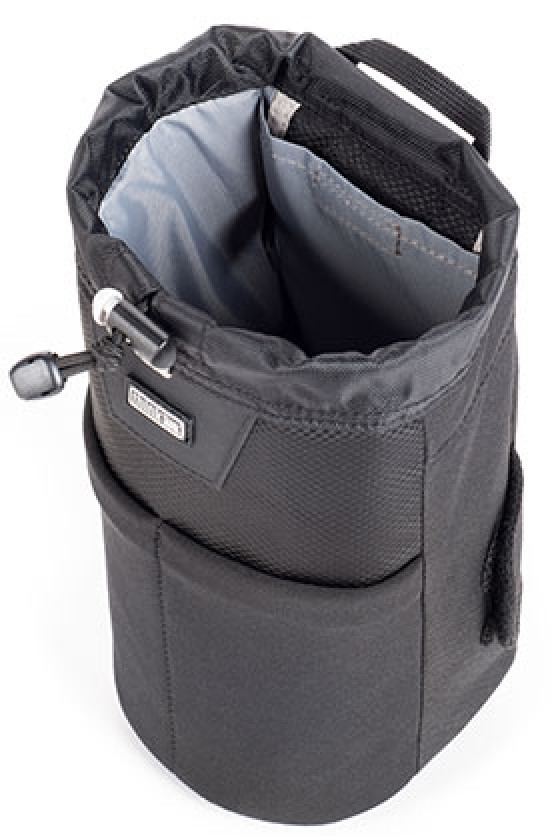 - Wide mouth for quick access when switching lenses, closes via drawstring for secure transport