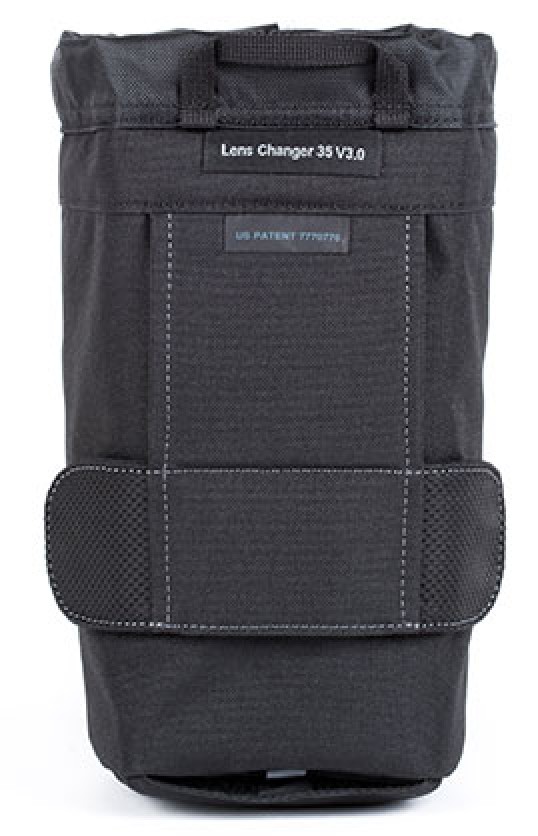 Par of the modular belt system, this black Lens Changer 35 V3.0 from Think Tank Photo is a water-resistant nylon pouch designed for holding professional zoom lenses such as the 24-70mm f/2.8 or 70-200mm f/4 with their lens hood. The lens case attaches to any optional Think Tank belt or backpack, so you can easily use it while shooting for switching lenses on the go.