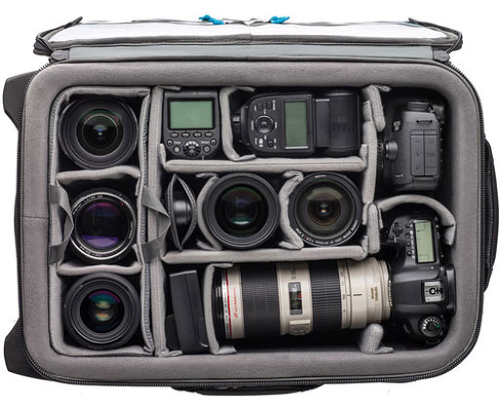 A large, main compartment with adjustable dividers can hold a complete kit for many photographers, while the interior of the main compartment lid features four, clear mesh panels for easy identification of their contents. The Roadie Air Case Roller 21 can fit two, gripped DSLR camera bodies with a 400mm f/2.8 lens or eight to ten smaller lenses, along with flashes and accessories.