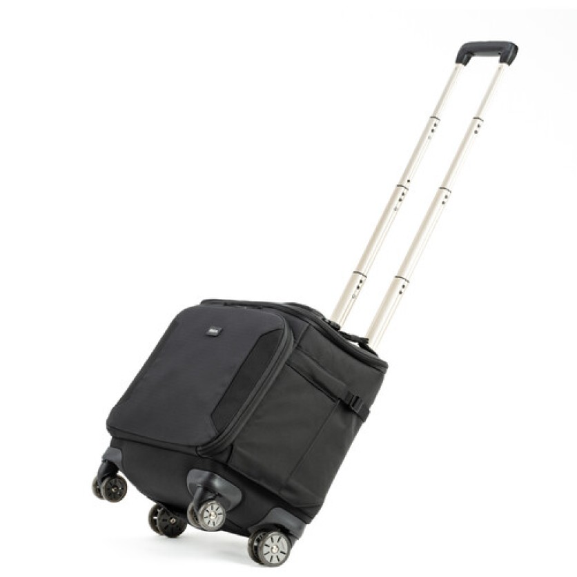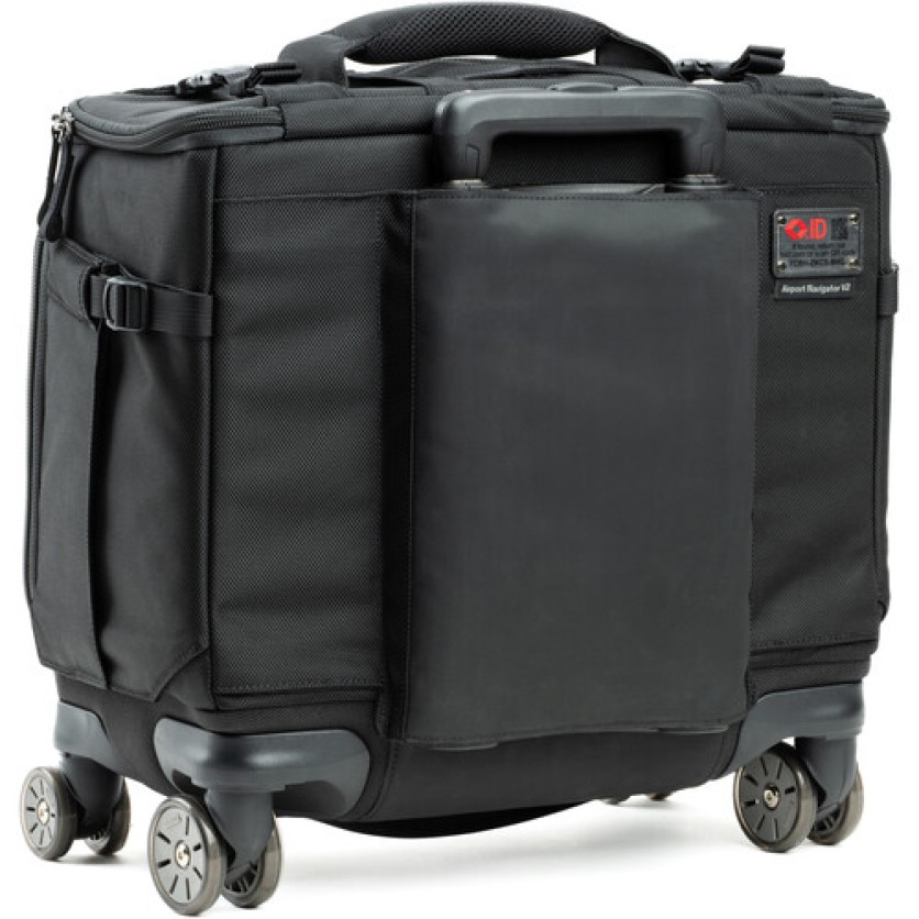 Protect and transport your camera gear or personal travel necessities in this black, 22L Airport Navigator V2 from Think Tank Photo. This roller bag is designed to comfortably accommodate two gripped mirrorless cameras with lenses attached, plus two extra lenses or flashes. A designated, padded pocket stores your 12.9" iPad Pro and a 16" MacBook Pro. Use the padded dividers to organize the interior to best suit your contents. Carry options include a top grab handle and a removable padded shoulder strap. You can also roll the bag seamlessly through airports using the retractable handle and four sets of double spinner wheels.