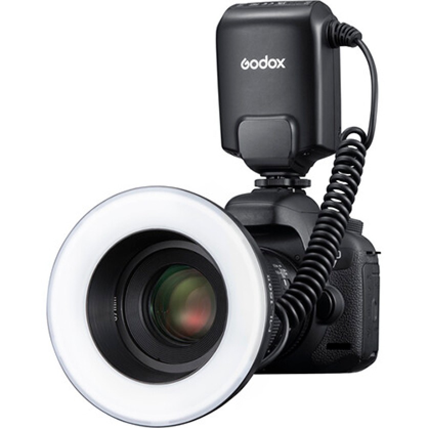 Compatible with DSLR cameras with a hot shoe, the ML-150 II Macro Ring Flash from Godox illuminates your subject with soft, nearly shadowless light that reveals every detail. The ring light consists of two components: a controller, which slips into your camera's hot shoe, and the ring flash, which mounts on your lens. Godox includes 49, 52, 55, 58, 62, 67, 72, and 77mm adapter rings to insure wide compatibility. The control unit is the brain and power pack of the system. The manual unit can regulate light intensity in 11 steps and recycles in 0.1 to 2 seconds and runs on four AA batteries that give you 300 to 1000 flashes.