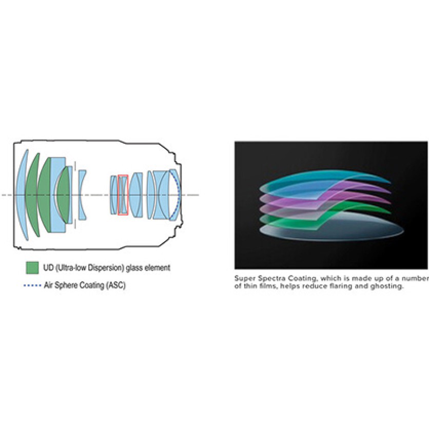 Three ultra-low dispersion elements control a variety of aberrations in order to achieve high sharpness, clarity, and accurate color rendering.