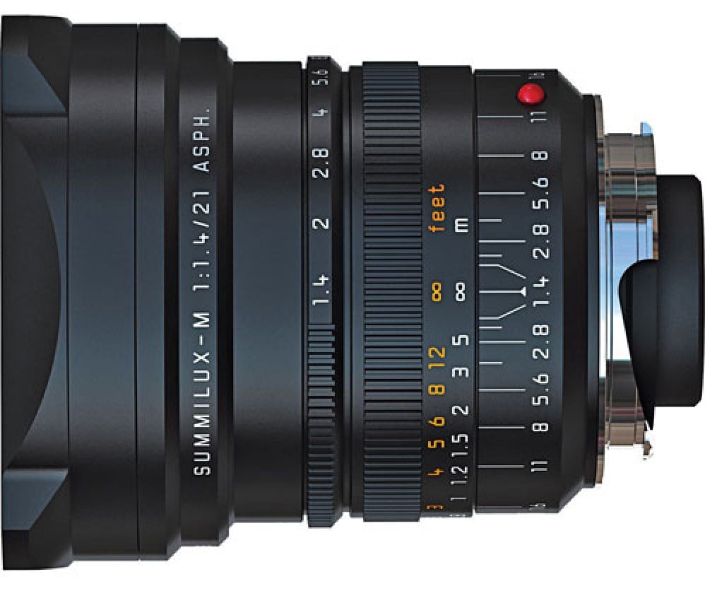 The Leica 21mm f/1.4 Summilux-M Aspherical Lens is a super-wide angle lens designed for high-speed performance. Its bright f/1.4 aperture allows for an extremely shallow depth of field (DOF), and at a medium f/stop, the focal range is so great that entire scenes can be reproduced sharply. Because of its floating element design, the very high resolution is retained even in the close-up range.