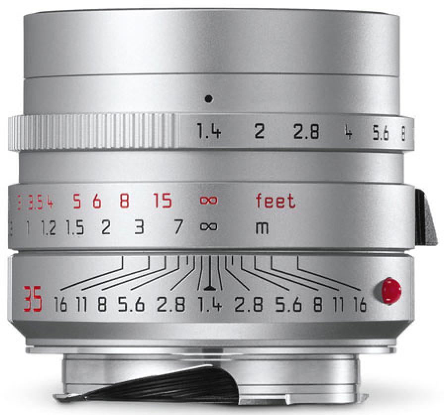 A popular wide-angle lens for the Leica M rangefinder system, the silver Summilux-M 35mm f/1.4 ASPH Lens from Leica provides high quality optics for excellent performance in a variety of applications. The aperture range starts at a fast f/1.4 for available light and stops all the way down to f/16 for use in many scenarios, such as landscapes or images requiring great depth-of-field. The optical design also allows this lens to remain compact with 9 elements in 5 groups, of which one has an aspherical surface to assist in control of aberrations.