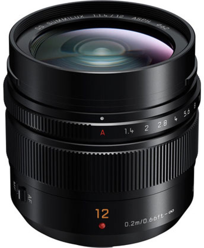 This wide-angle 12mm f/1.4 lens provides a 24mm equivalent focal length.