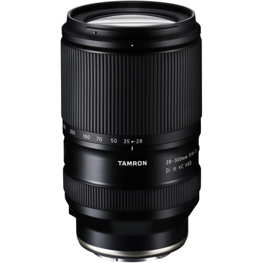 A travel-friendly zoom with a sweeping focal range, the 28-300mm f/4-7.1 Di III VC VXD Lens from Tamron gives users the ability to capture wide-angle scenes as easily as intimate close-ups. Designed for Sony E-mount mirrorless camera systems, this lens has a complementary lightweight design, weighing just 1.3 lbs. Handheld shooting is bolstered by Tamron's Vibration Compensation (VC) technology, providing the necessary camera shake reduction needed for capturing at telephoto focal lengths. Its moisture-resistant design coupled with a fluorine coating on the front lens element contributes to its overall dependability out in the field and helps prevent users from being hindered by liquids, dust, and fingerprints sticking to the lens glass. Because of its vast zoom range, build quality, and portability, the 28-300mm f/4-7.1 offers a capable all-in-one solution for capturing subject matter ranging from landscapes and nature to portraits and sports.