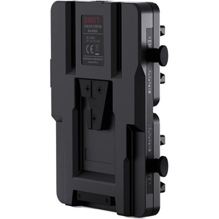 The V-mount Hot-Swap Plate for PB-M98S Battery from SWIT is an extender plate for SWIT Pocket V-mount batteries. Installed with 2x PB-M series batteries, the size is equivalent to a standard large capacity V-mount battery, and the KA-M20S plate can draw the 2 batteries one-by-one as hot swap mode, or use together as high load mode. It offers two power modes: Hot Swap mode and High Load mode. When the device power consumption is less than single PB-M battery Max load (PB-M98S 100W load), the KA-M20S would be “Hot Swap mode” – 2 batteries one-by-one using, and the free battery can be changed any time. When the device power consumption is more than single PB-M battery Max load (PB-M98S 100W load), the KA-M20S would be “High Load mode” – 2 batteries using together, and none of the batteries can be removed. The Hot Swap mode and High Load mode can be automatically switched according to current power consumption of the device.