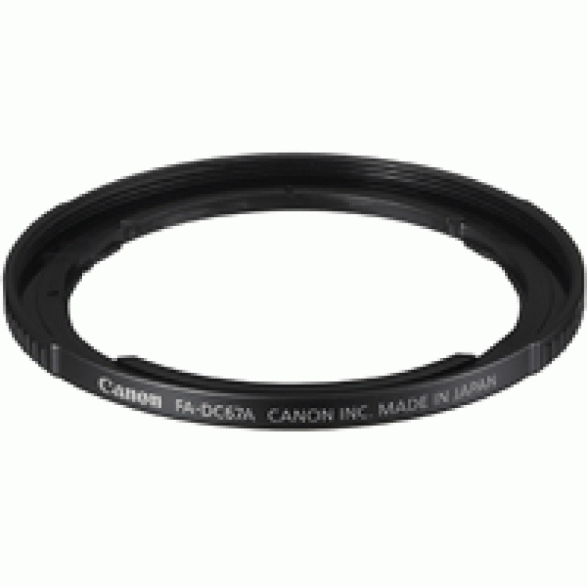 The Canon Filter Adapter FA-DC67A for the SX30 Camera is used to mount 67mm filters to the lens barrels of the cameras.