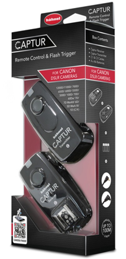 Trigger both a camera and flash remotely with the Captur Remote Control and Flash Trigger from hahnel, available here with cables for use with Canon cameras. The system features both a transmitter and receiver that operate on the 2.4 GHz frequency with a range of 328'. Also, it has Digital Channel Matching that ensures quick and simple pairing of additional receivers and triggers.