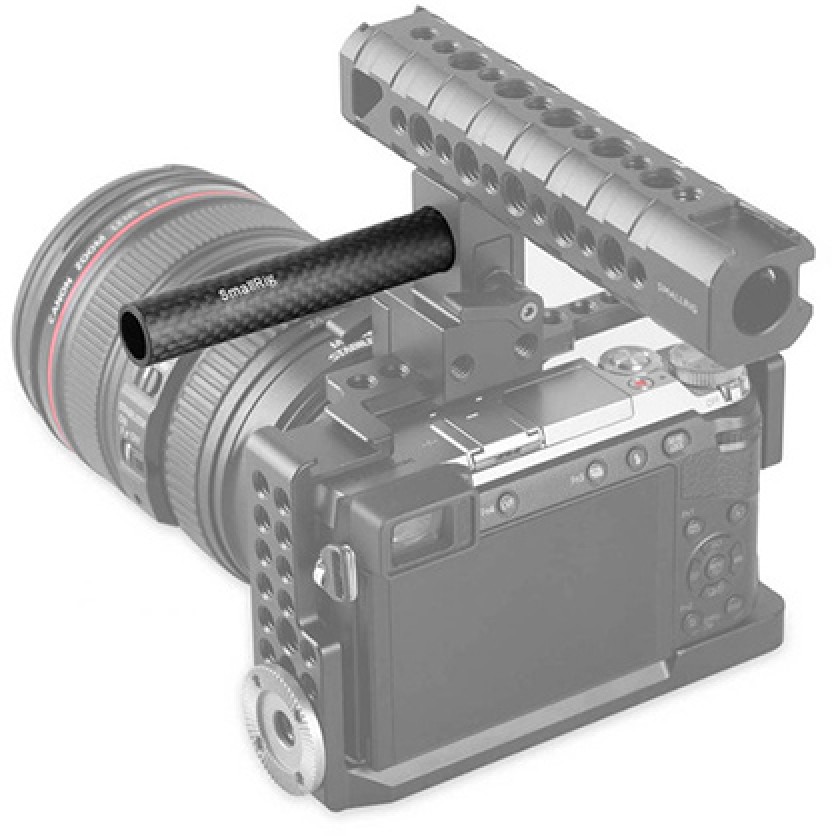 This 15mm Carbon Fiber Rod Set from SmallRig lets you attach 15mm rod-mounted accessories to your rig. These carbon fiber rods are 4" in length and, with the appropriate baseplate, will conform to the 15mm LWS rod standard for accessory mounting. The carbon fiber construction keeps these rods lightweight, while allowing them to maintain the rigidity necessary for accessory support.
