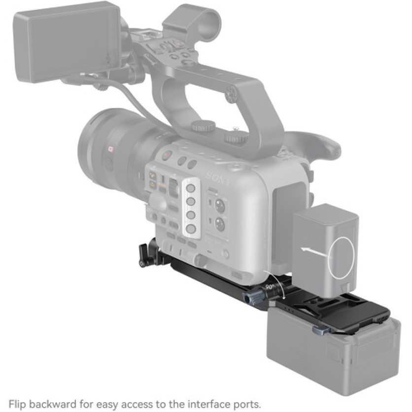 - The V-lock plate folds down 180° for easy storage and to use the camera's rear plate.