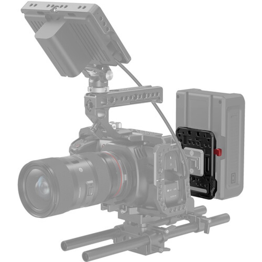 Mount a V-mount battery onto your rig with this V-Lock Battery Plate from SmallRig. The mount features a V-lock mount with a quick release locking mechanism that secures most V-mount batteries. The mount has no electronics and is meant to mount a battery that has its own power outputs to power your gear.