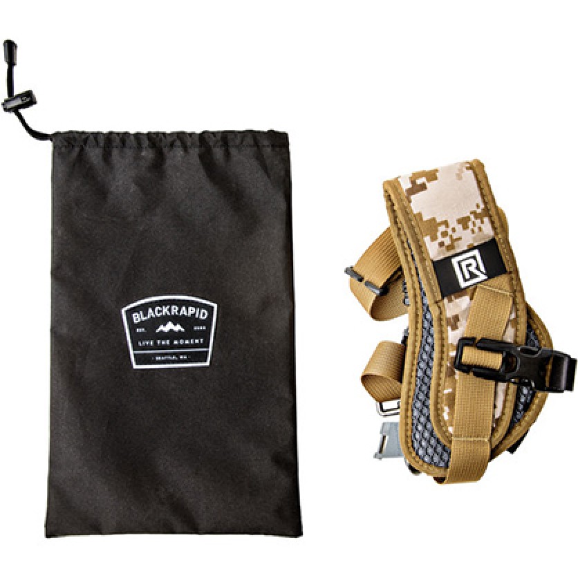 Safely and securely carry your camera, and have it handy when you need to shoot fast, with the BlackRapid Sport X Camera Sling Strap in digital desert arid camouflage. It is designed to be worn across a right-handed user's body from the left shoulder to the right hip, and your connected camera will rest upside-down on upir hip, so that it can be quickly raised for use. A 16 x 2.2" shoulder pad is ergonomically curved to fit the contour of your shoulder and evenly distribute the weight of the camera while its TPE foam and poly air mesh improve air flow and comfort.