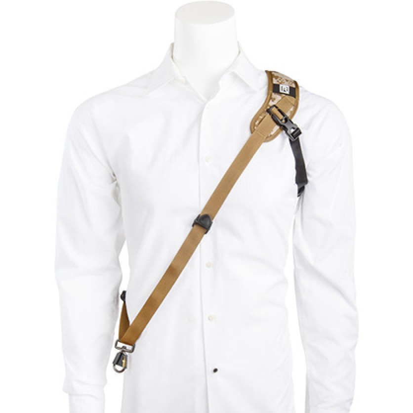 The underarm stabilizer clips fit under your left shoulder and prevent the camera from twisting as it rests on your side. This stabilizer strap is removable if you find you don't need it and want to keep your sling system simple. The Sport X also comes with a durable locking carabiner to hang your camera from, and attaches to a BlackRapid FR-5 FastenR connected to your camera or lens 1/4"-20 tripod mount. A plastic Lockstar protector folds over the carabiner and prevents it from accidentally unlocking while also helping to prevent the carabiner from scratching the camera or lens.