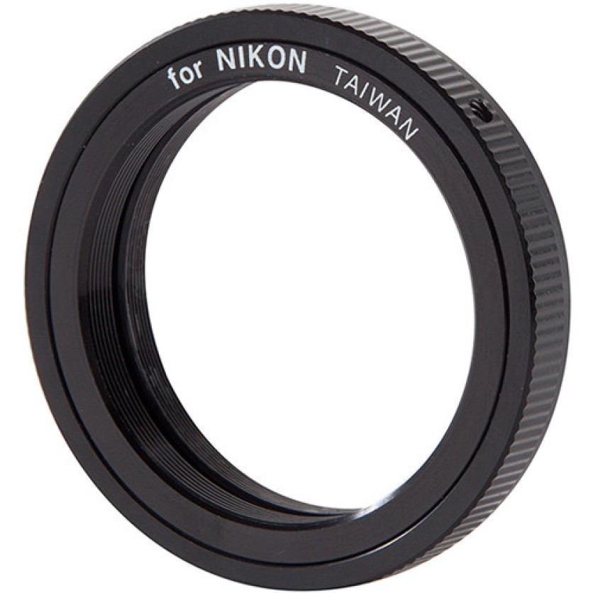 The Celestron T-Ring for Nikon F-Mount Cameras allows you to use an F-mount camera to capture photos with your Celestron telescope. The T-ring attaches to the lens mount of your camera, securing via a sturdy bayonet flange that locks in place just like a lens. Then you can attach the other side of the T-ring to your telescope. A Celestron adapter (sold separately), such as the Celestron T-adapter, will be required to do this. It's the optional adapter that will secure to your telescope, and the T-ring will then thread onto the adapter. The Celestron adapter you choose depends on the type of photography you wish to do.