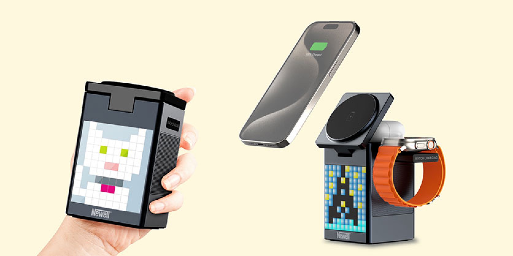 The Newell induOne MagPlay offers convenient wireless charging for smartphones, smartwatches, and earphones, combined with a Bluetooth speaker, clock, and alarm. Its strong MagSafe magnetic mount provides stability for vertical or horizontal phone charging. Enjoy clear stereo sound with Bluetooth 5.3, and customise the LED display with pixel art animations. The durable aluminium case adds elegance, while the built-in battery ensures wireless functionality. Ideal for modern spaces, it makes a perfect gift with a 40-month protection program.