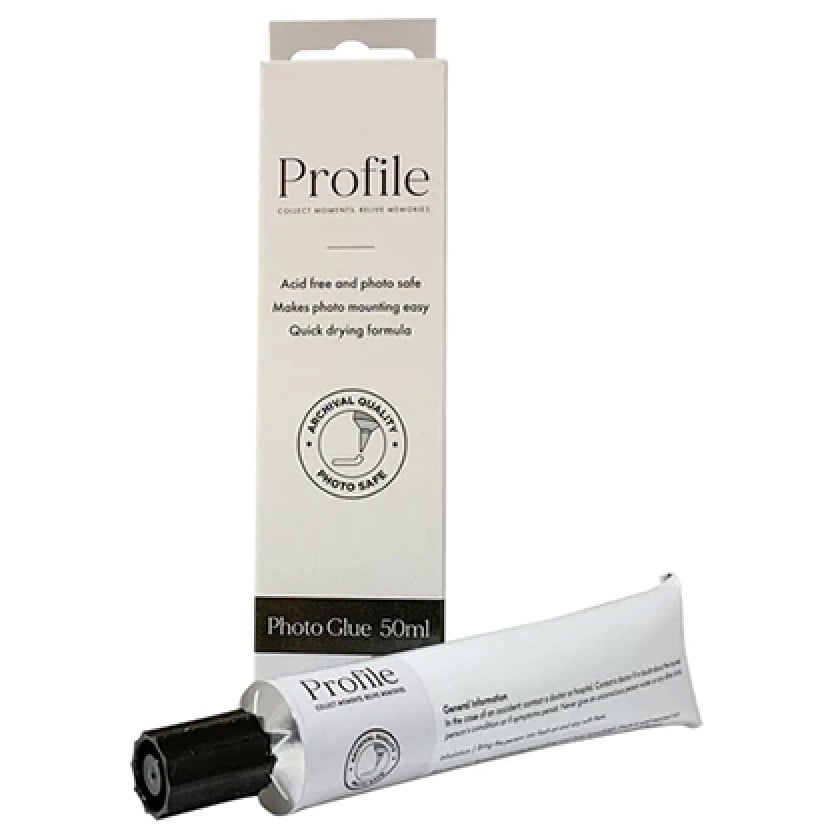 Unlike regular household glue, Profile Removable Photo Glue is made from materials that won't damage the most common types of photos or pages with which it comes into contact.