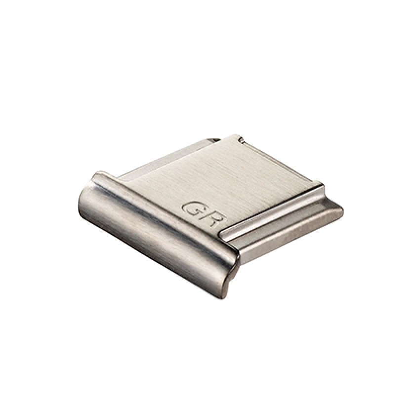 The Ricoh Metal Hot Shoe Cover GK-2 (GM) is made of stainless-steel alloy in a luxurious metallic dark gray color that is the same color as the Ricoh GN-3 Ring Cap for GR IV - Dark Gray.