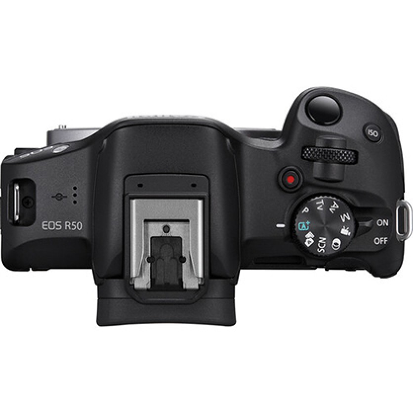 A compact and lightweight camera, the black Canon EOS R50 is a highly versatile mirrorless camera with a sophisticated photo and video feature set. Geared towards content creators and vloggers, this camera is slightly smaller and lighter than the EOS M50 Mark II and features an upgraded 24.2MP APS-C CMOS sensor and DIGIC X image processor to deliver high-resolution stills and UHD 4K videos.