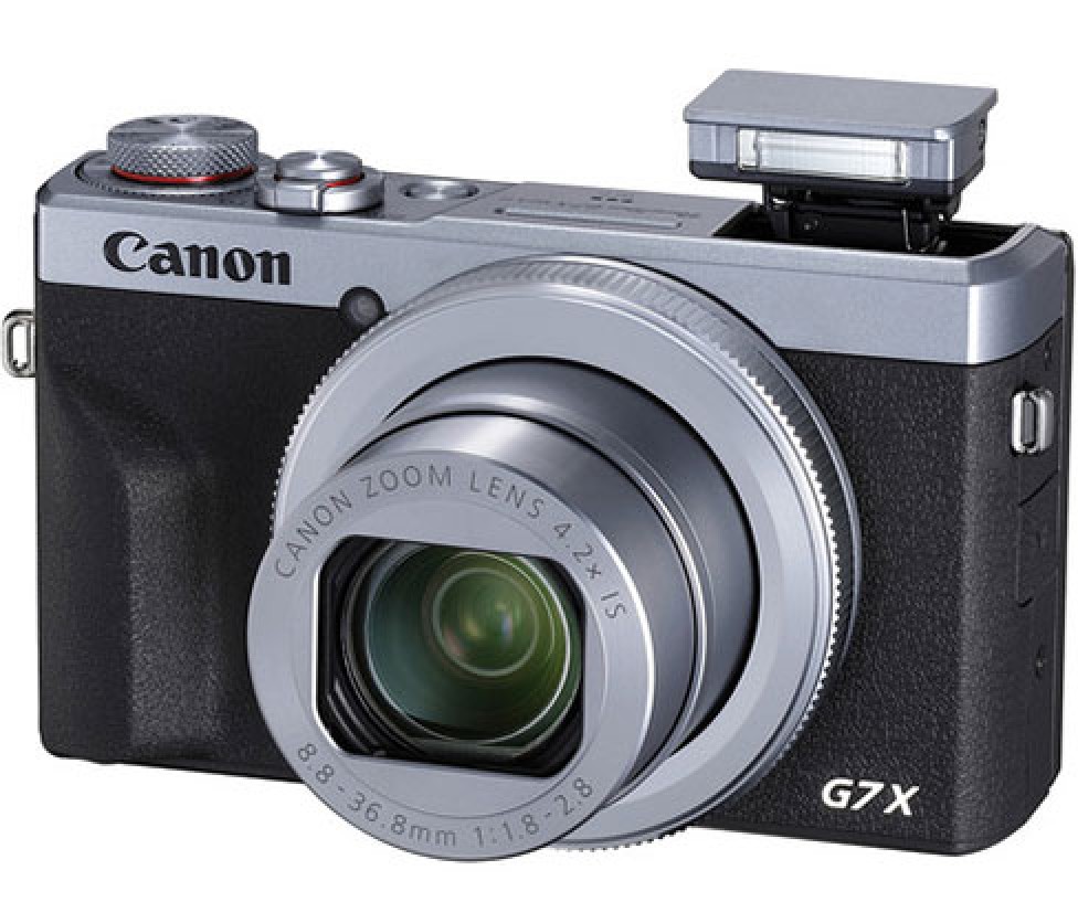Offering multimedia fluency within a compact design, the silver Canon PowerShot G7 X Mark III is a sleek camera distinguished by its advanced sensor design and flexible imaging capabilities. Its 20.1MP 1" CMOS sensor uses a stacked design, which pairs with the DIGIC 8 image processor to realize especially fast focusing performance, full-resolution shooting at up to 20 fps, and UHD 4K30p video recording. Optically, the G7 X Mark III houses a 4.2x zoom lens, which covers a 24-100mm equivalent focal length range for wide-angle to short-telephoto fields of view. An f/1.8-2.8 maximum aperture range suits working in difficult lighting conditions as does an Optical Image Stabilizer, which compensates for the effects of camera shake. The camera's slim design also incorporates a 3.0" 180° tilting touchscreen LCD and has both Bluetooth and Wi-Fi for wirelessly connecting to a mobile device.