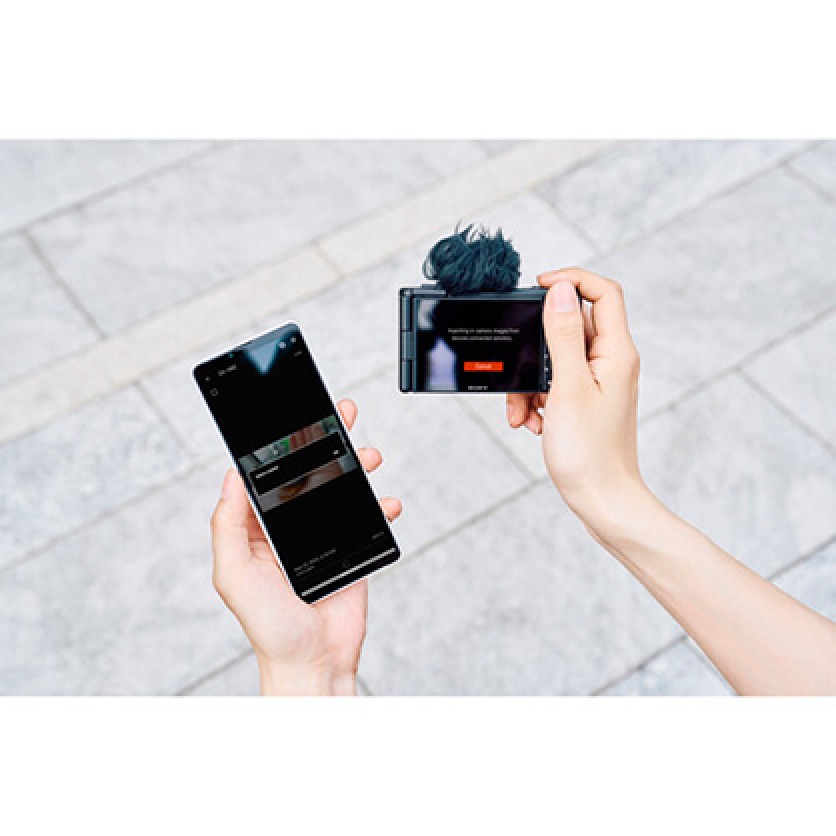 Elevated content is easier to produce with the camera's Cinematic Vlog setting, Slow & Quick shoot mode, and its intelligent built-in microphone. The Cinematic Vlog setting triggers a fixed 2.35:1 aspect ratio and 24 fps frame rate while offering a selection of "Looks" and "Moods" to refine the image aesthetic. Slow & Quick mode allows you to apply frame rate adjustments in camera , up to 5x slower and 60x faster, from a single, simple screen. The built-in, three-capsule microphone is multidirectional and, when used in auto mode, uses the camera's face- and object-recognition software to select the best direction for the microphone. A 3.5mm microphone jack and a multi-interface shoe allow compatibility with external microphones, and the camera comes with a windscreen to ensure clear sound when you're shooting outdoors.