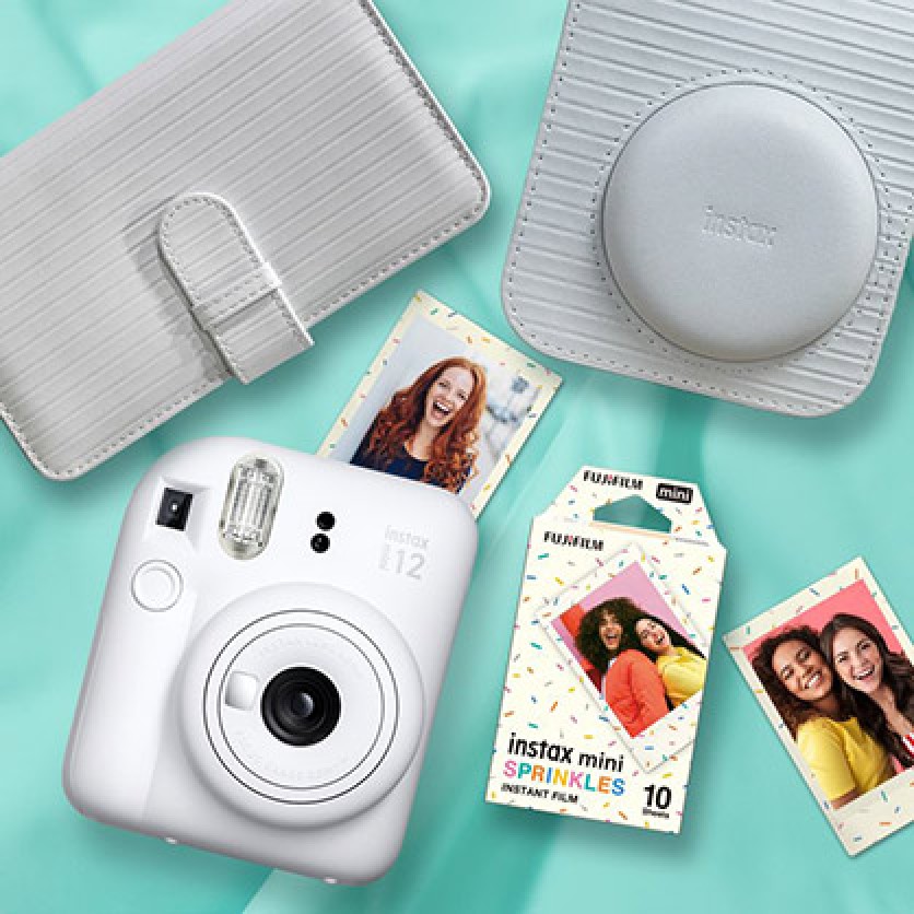 The super bubbly INSTAX mini 12 is bursting with joy, creativity and colour. Not only is this iconic instant camera available in five eye-poppingly pleasing tones - it's fully loaded with easy-to-use modes and controls.