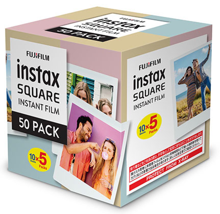 Fujifilm Instax Square Film 50 Pack are enjoying a resurgence in popularity for their retro look that adds sophistication to every photo, no matter what the composition. Enjoy a wider range of uses and forms of expression. Fujifilm Instax Square Film 50 Pack White Square is compatible with Instax Square Cameras, width picture dimesions of 62 (w) x 62 (h) mm.