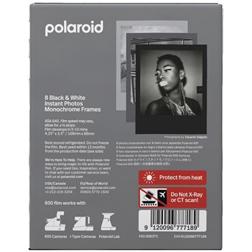 Black and white instant film for Polaroid cameras. Excellent black and white tones, high detail and sharpness - what more could you want? Compatible with Polaroid 600, Polaroid I-2, Polaroid Now, Polaroid Now+, OneStep 2, OneStep+ cameras and Polaroid Lab printer. The set includes 8 sheets with black, gray and white frames.