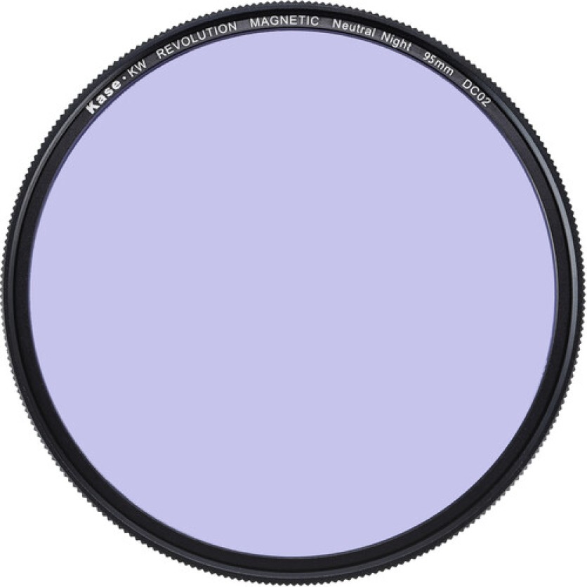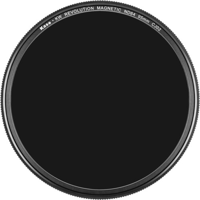 The 95mm Kase KW Revolution Mega Set features six filters from Kase's color-coded KW Revolution magnetic filter system. You get ND8, ND64, ND1000, CPL, neutral night, and R.MCUV filters, designed with color-coded filter frames for easy identification and swapping. The ND8 is color-coded blue, the ND64 is yellow, the ND1000 is red, the CPL is silver, the neutral night filter is green, and the R.MCUV filter is black. The kit also includes adapter rings, a filter case, and one front lens cap. The KW Revolution system is based on Kase's earlier Wolverine series and is fully backwards-compatible with Wolverine filters.