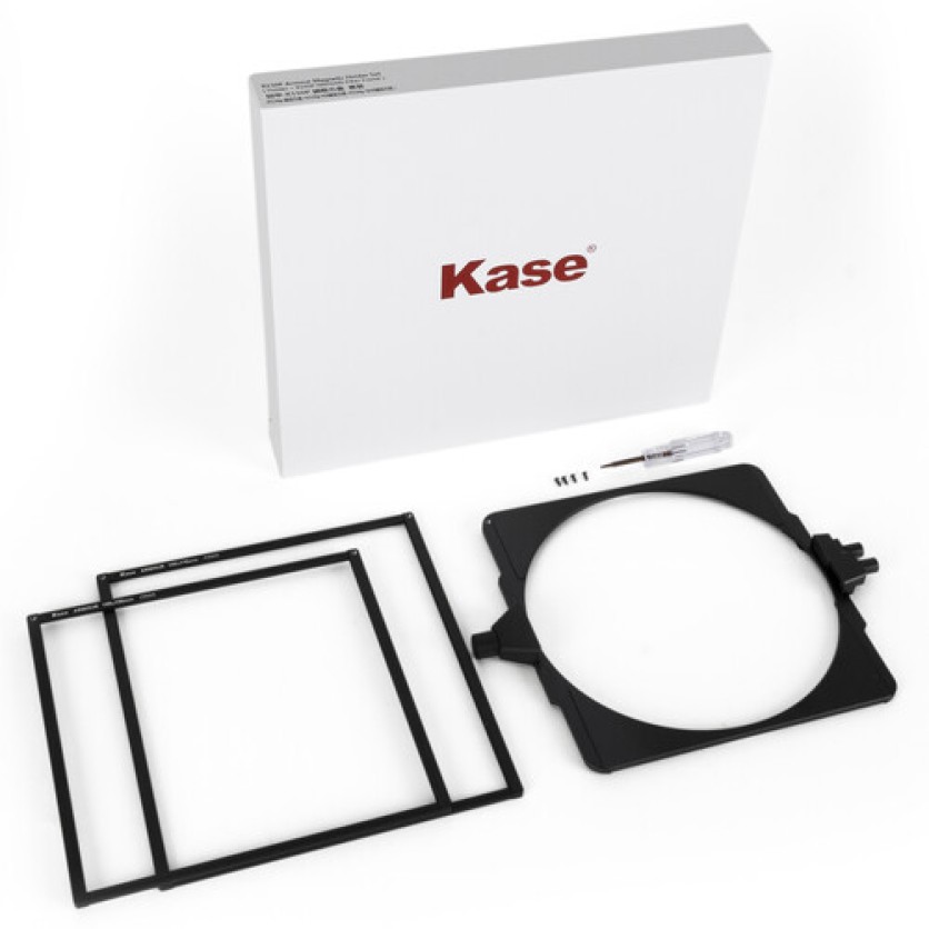 The K150P Armour Magnetic Holder Adapter Set from Kase converts a standard K150P filter holder into an Armour magnetic folder holder. This add-on holder has independent locking knobs to hold each filter frame securely in place, and the position of the filter in the K150P filter holder will not be affected by adjusting the square filter frame. Multiple magnetic filter frames may be stacked without vignetting. This set includes one square and one rectangular magnetic filter frame.