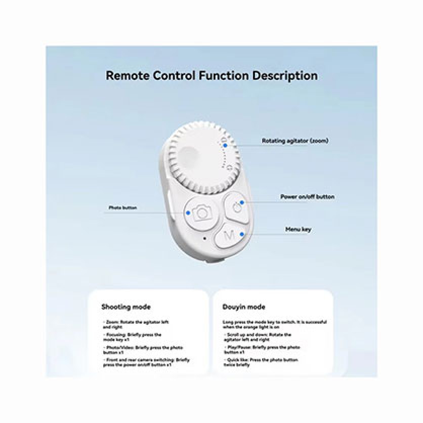 Enjoy effortless selfies and group photos with the Bluetooth-controlled remote, offering a 10-metre range for flexible shooting. Easily zoom in or out with the convenient button, compatible with both iOS and Android devices. The compact design and durable materials ensure portability and resilience, while the pre-installed battery means it's ready to use straight out of the box.