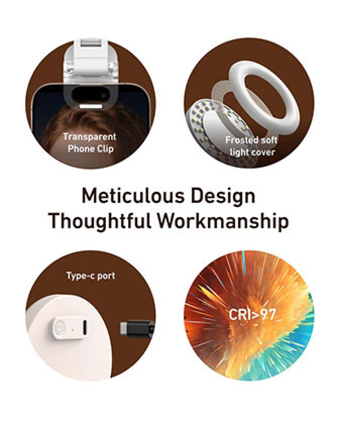 - Soft, diffused lighting ideal for portraits, videos, and beauty content