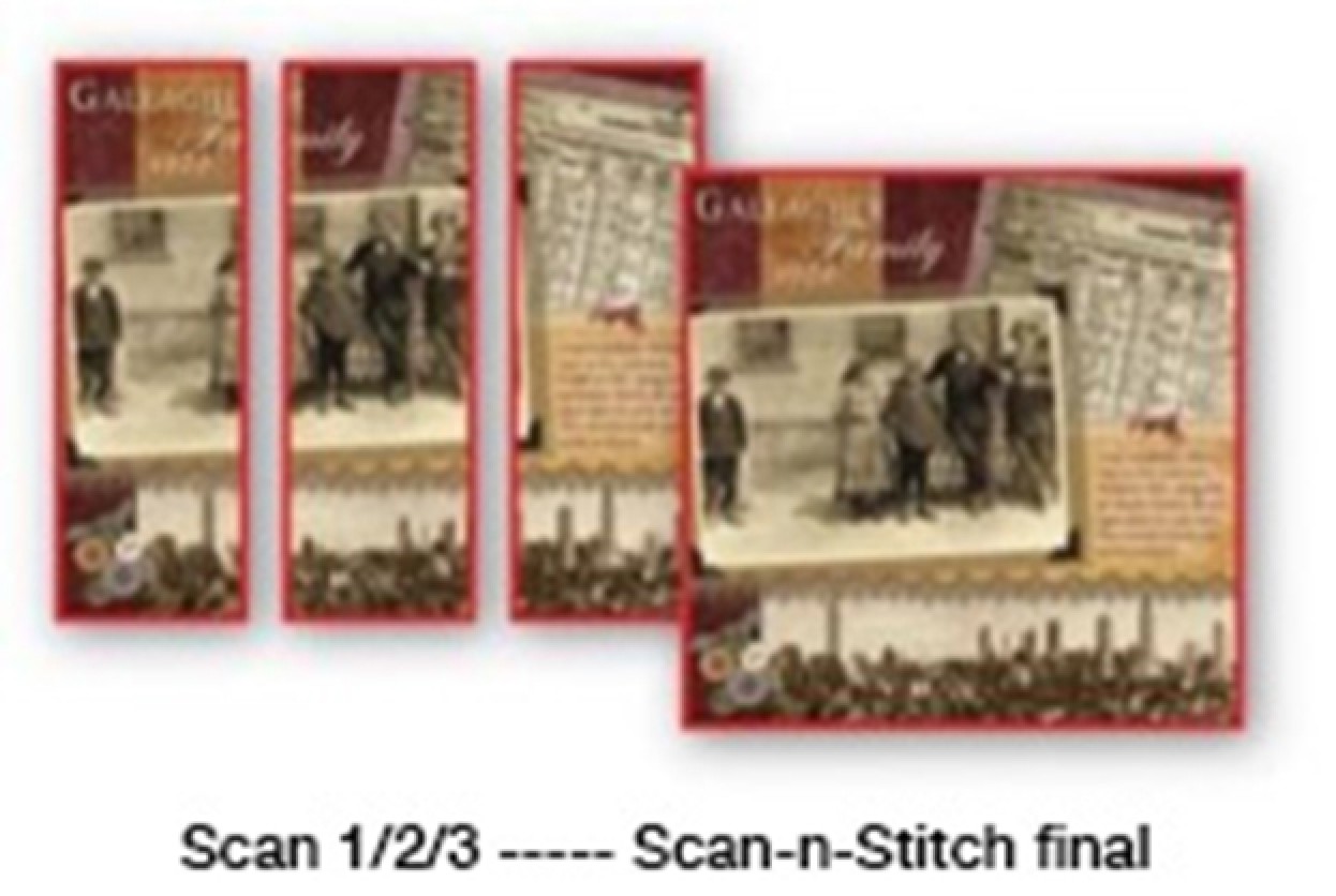 Oversized artwork, photo albums and documents can be scanned with Scan-n-Stitch. Included with the EPSON Perfection V39II is this legal innovative software program; digitizes A3 and other large-size pages section by section, then stitches all portions together automatically.