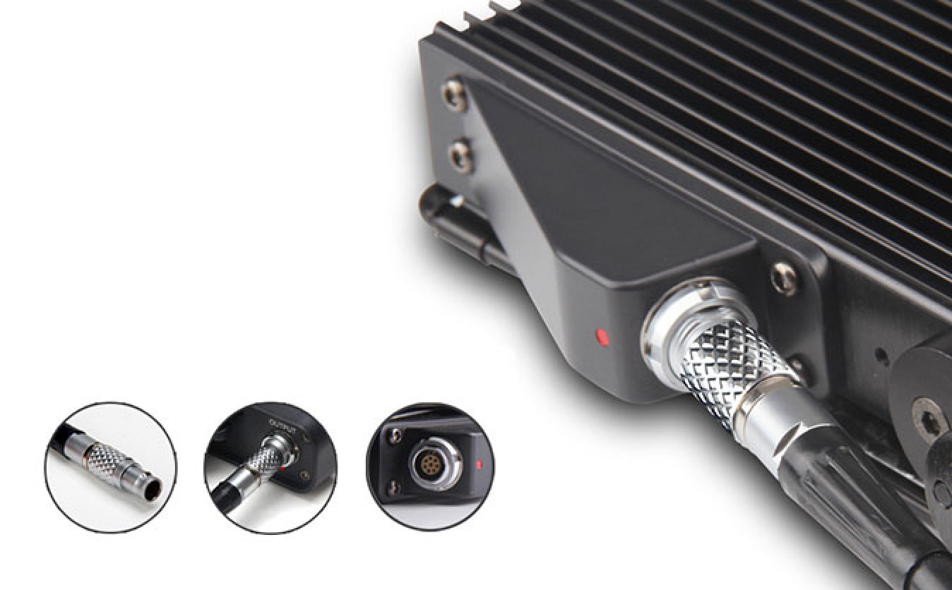 - A LEMO-style connector is used between the controller box and light fixture for convenient, one-handed installation and removal of the included connection cable.
