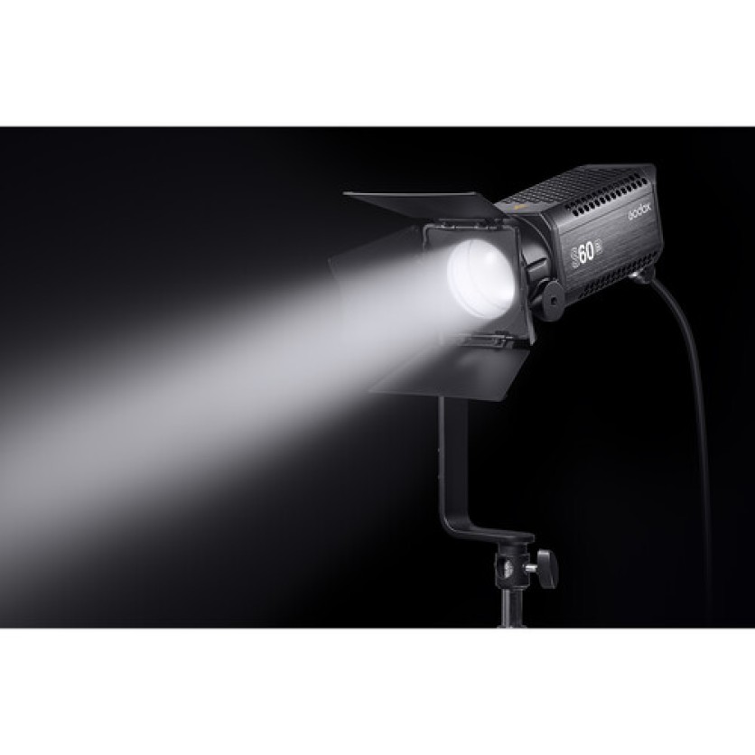 Use this S60BI Focusing LED Light from Godox for when you require variable beam spread backed by control and power options. The light has an expansive beam spread from 6 to 55 degrees so you can use it as an accent light, a hair light, a long throw fixture, or a selective lighting tool. At 55 degrees, it is easy to fill a silk or light a group. The included barndoors allow you to further shape the light.