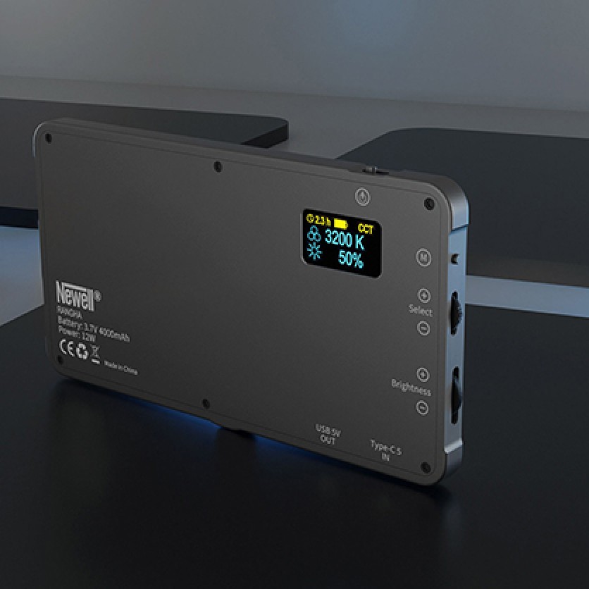 The Newell RGB-W Rangha LED light is a compact, powerful lighting solution for filmmakers and photographers. Its full RGB and white diode range allows for smooth colour and saturation adjustments, while a robust aluminium case ensures durability. The built-in 4000 mAh battery provides up to 90 minutes of use and can double as a powerbank. With 21 thematic programs and excellent light quality, this versatile device is easily portable and perfect for any shooting scenario.