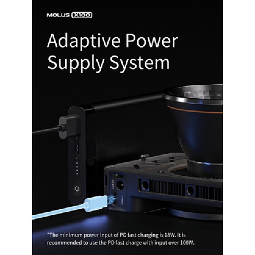 The MOLUS X100 has 100W of power output supported by innovative cooling technology and serves as a universal film light.