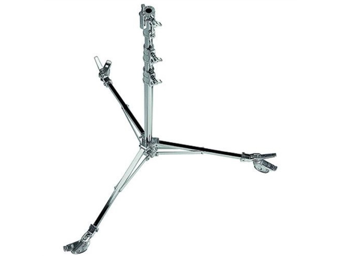 The 11.8' Avenger Low Base Roller Light Stand 36 is a heavy duty, chrome-plated steel support that features a low base for extra stability, braking wheels, two risers and both a female 1 1/8" Junior receiver and a 5/8" Baby retractable stud.