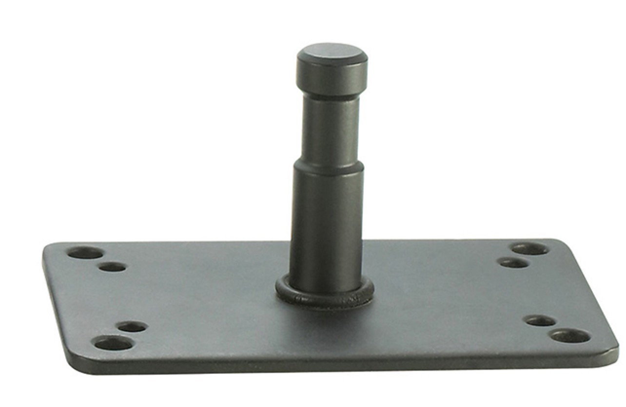 Constructed of steel, and finished in black, this Krane 3.0" Baby Pin Wall Plate is a handy accessory on any type of production set. All that's needed is a flat surface for its base and optional screws to mount it to walls, ceilings or floors.