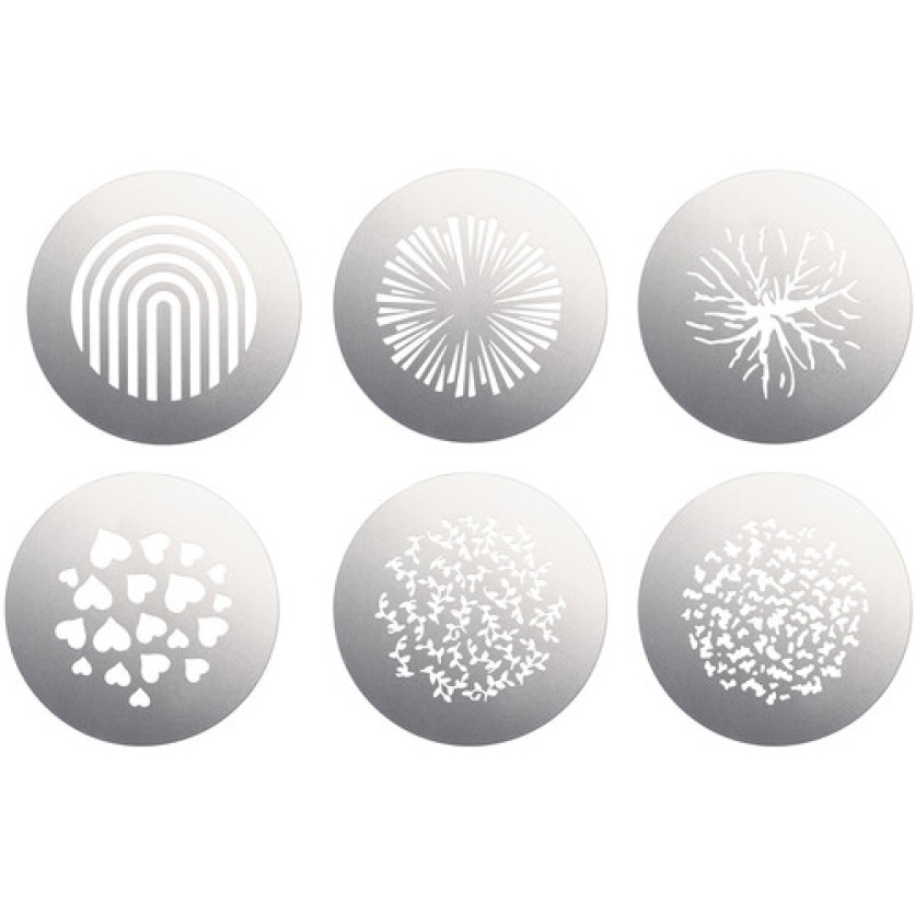 Enhance your creative projects in theatre, video, film, and fashion with this set of 6 gobos, including stars, hearts, and trees, designed to add a personal touch to your work.