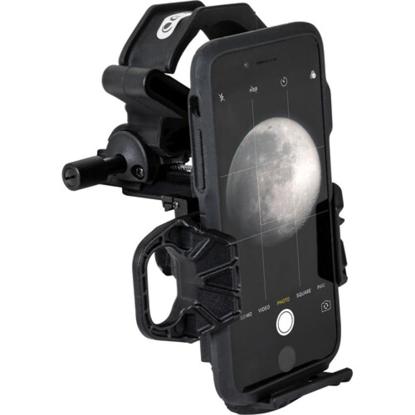 Capture still images and video with virtually any smartphone through virtually any optical device with Celestron's NexYZ DX 3-Axis Smartphone Digiscoping Kit—without even touching your screen. The NexYZ adapter design allows it to be used on spotting scopes, binoculars, and telescope eyepieces—including standard 1.25" and larger 2" telescope eyepieces. Celestron includes two rings that allow the adapter to be mounted on smaller optics, such as microscopes. Included with the kit is a remote shutter release that can be used on virtually any iOS or Android smartphone.