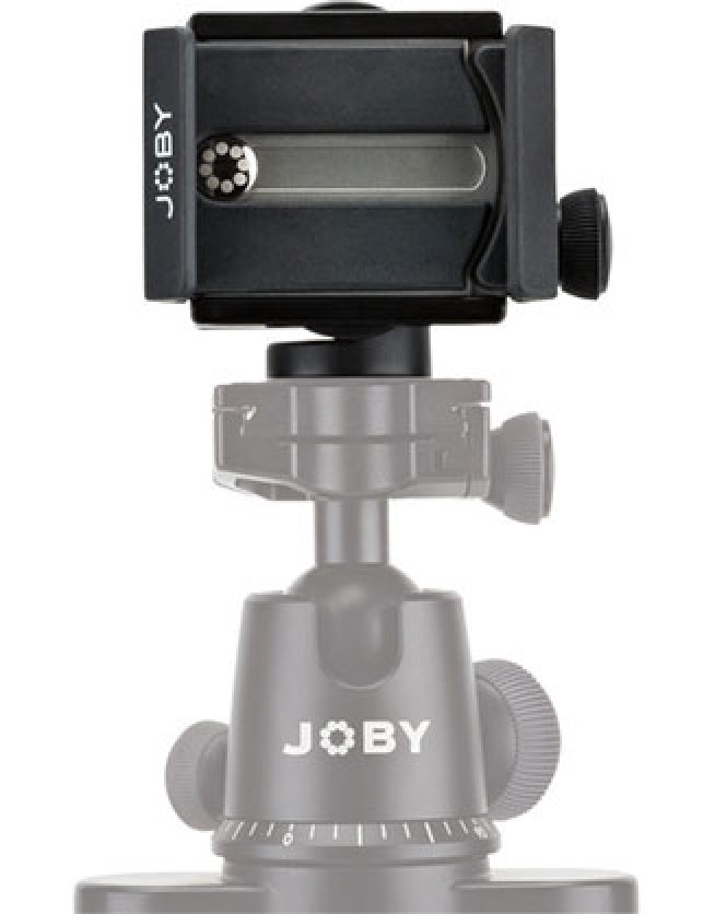 The GripTight PRO from Joby allows you to mount your smartphone to standard 1/4"-20 thread tripods, letting you capture photos and video using its camera. With your smartphone securely mounted, you can also watch videos or other media hands-free. The GripTight PRO fits smartphones 2.2 to 3.9" wide, with or without a case attached. The mount has overmolded stainless steel plates that slide and lock for a precise fit. It holds your device in portrait or landscape mode and its angle of tilt can be adjusted. TPE grip pads secure it in place.