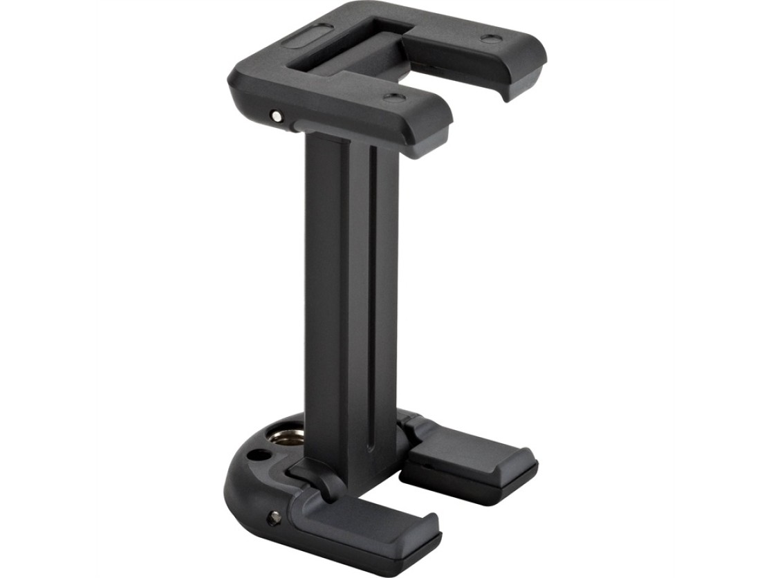 For smartphones with or without a case. The black and charcoal GripTight ONE Mount from Joby allows you to mount your smartphone to 1/4"-20 thread tripods, letting you capture photos and video using its built-in camera. With your smartphone securely mounted, you can also watch videos or other media hands-free. The GripTight ONE Mount fits smartphones 5.6 to 9.1 cm wide (including case). The mount has internal steel springs that allow it to expand to the size of your device, while TPE rubber grip pads secure it in place. The legs fold inwards for storage.